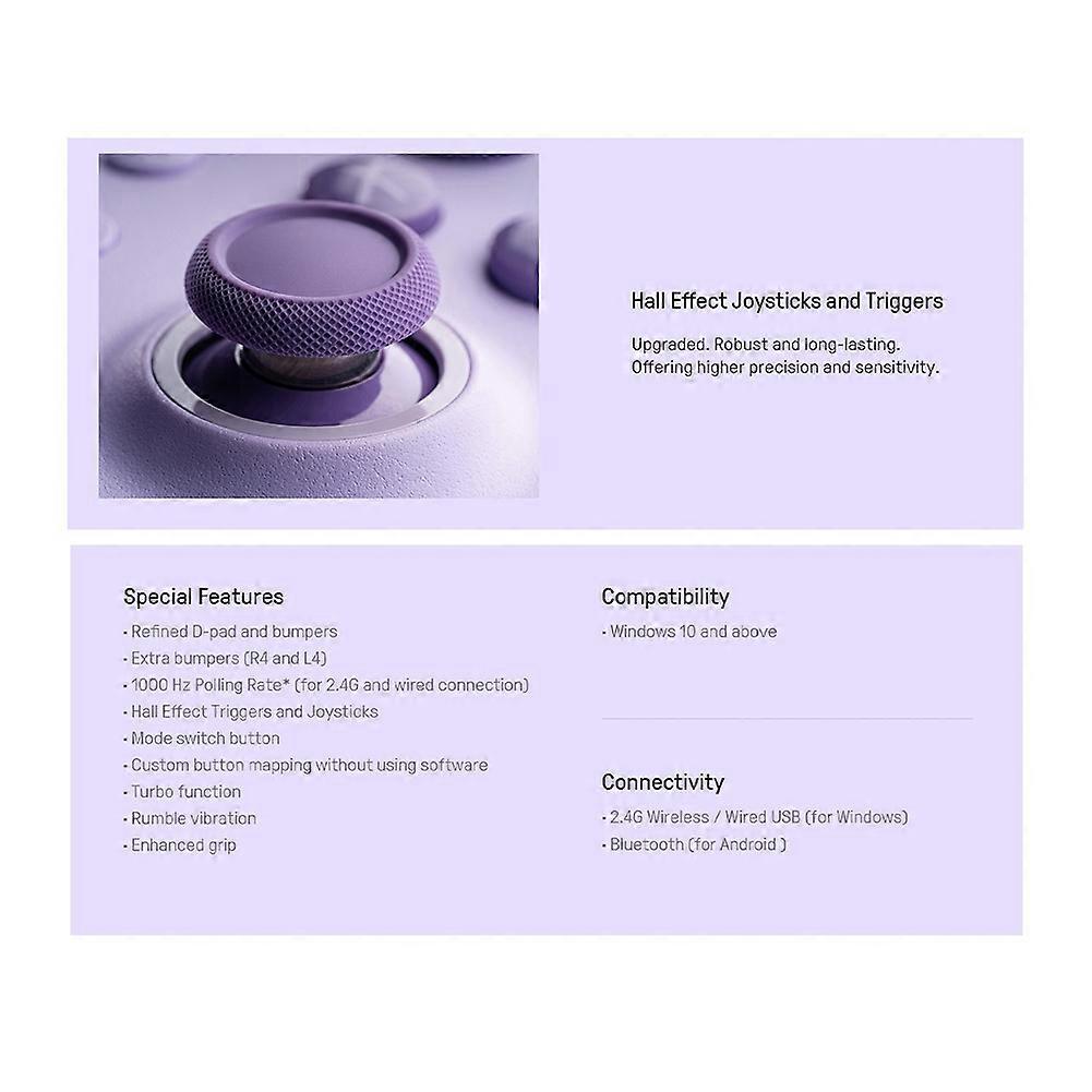 8BitDo Wireless 2.4G Gaming Controller with Hall Effect Joystick for PC Steam Deck Raspberry Pi Android,Purple