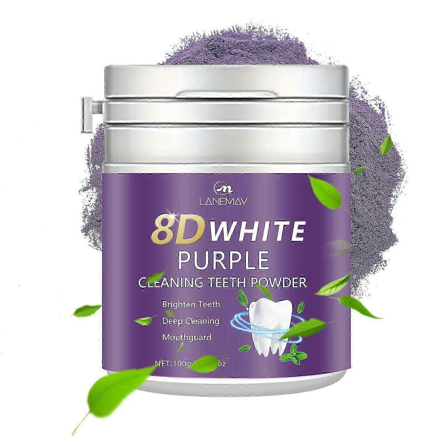 8D White Purple Cleaning Teeth Powder, Purple Tooth Powder Against Discolouration, Brightens and Deep Cleans Teeth, Fresh Breah