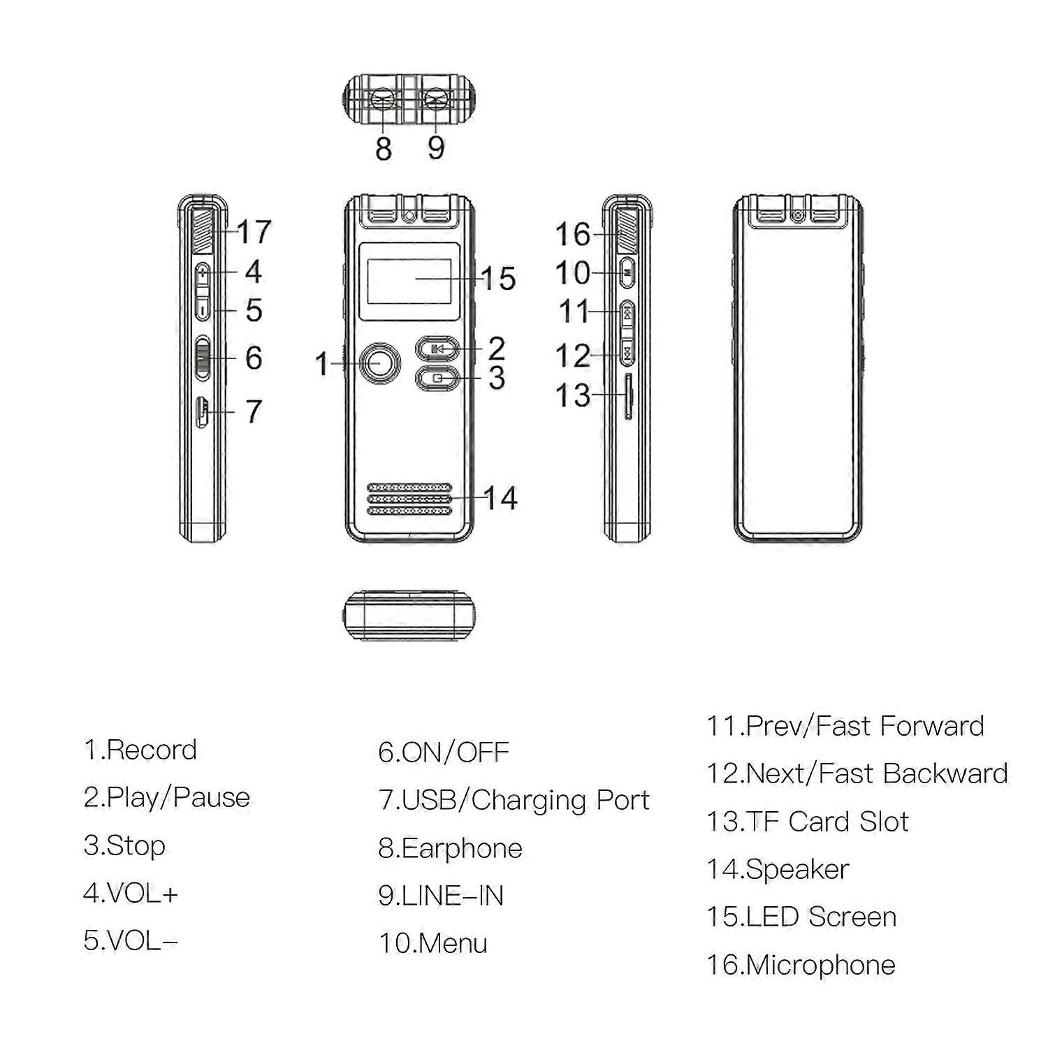 8GB Digital Voice Recorder Voice Activated Recorder MP3 Player 1536Kbps HD Recording Noise Reduction