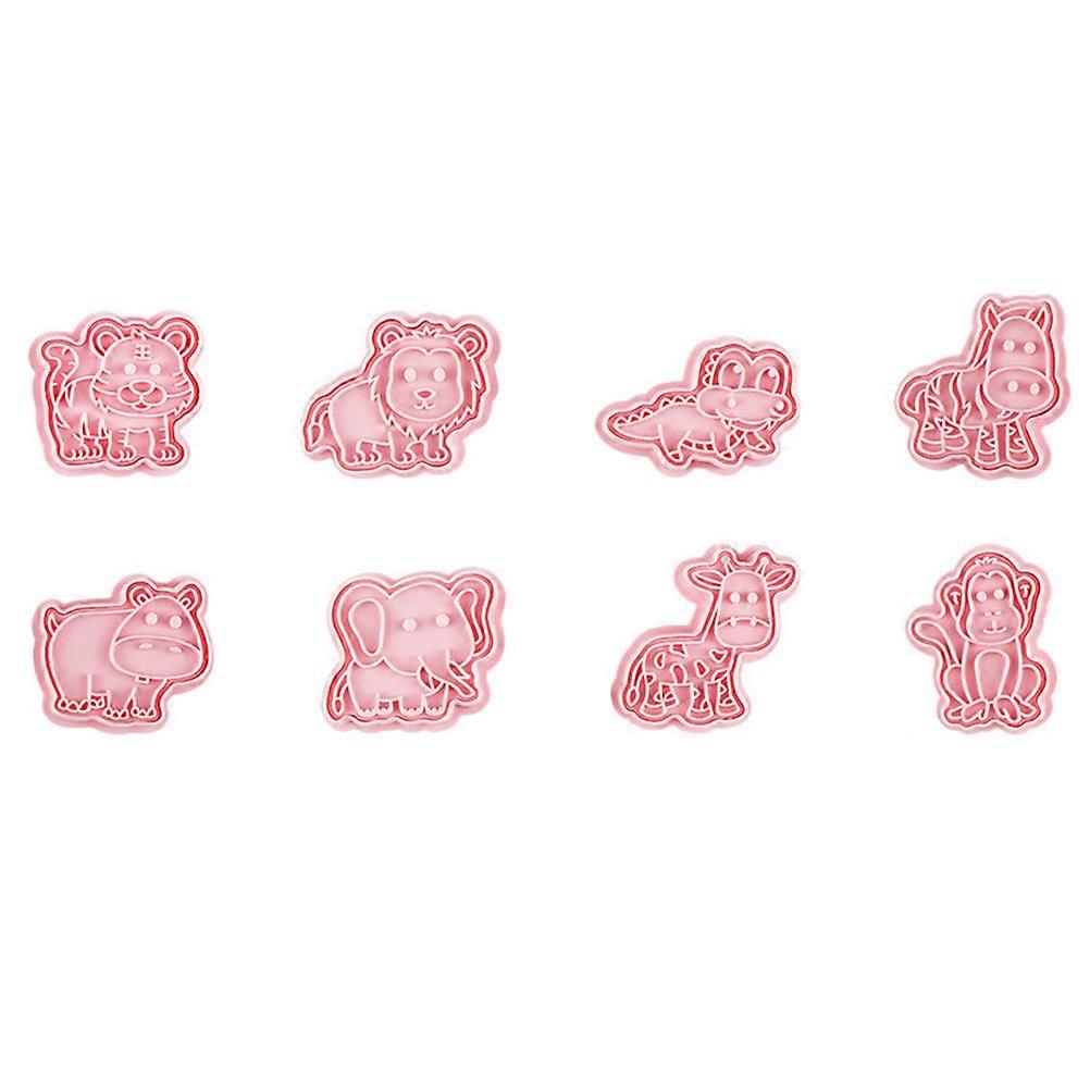 8Pcs Animals Shape Baking Molds for Cookie Making Pink Plastic