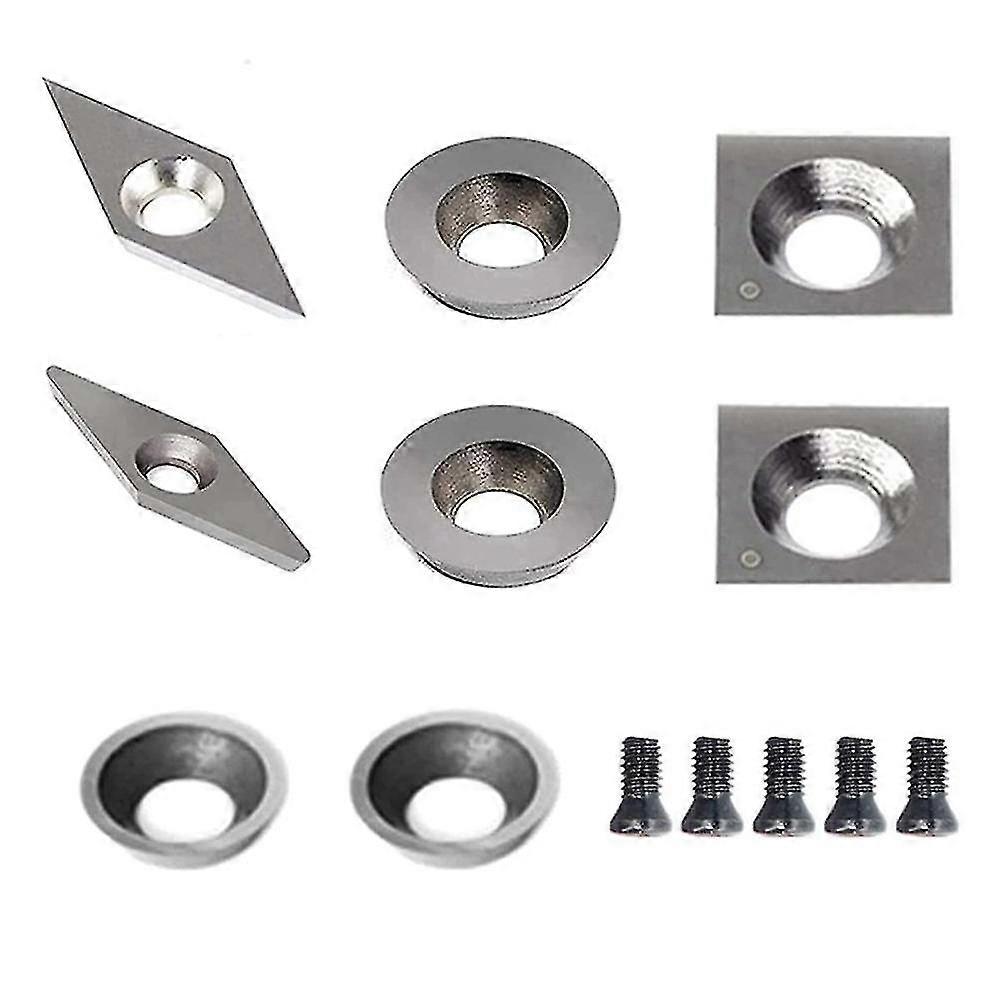 [Add Coating For Longer Service Life]: This set of combined wood turning tools adds a coating, which can increase the tool life by more than 60%, making it more durable, save your money.[Durable Tungsten Steel Material]: Made of solid tungsten steel - Provides the best combination of sharpness and durability.It is polished to a mirror finish for smoother cutting and longer tool life.[Suitable For All Levels Of Carpentry Workers]: This is a free combination suit that meets the needs of roughing and finishing cutting.Suitable for both professional and beginners.All the carbide turning inserts cutting tools are supplied with screws.Type: A Colour: Silver Material: Tungsten steel Package Contents: 1 x rhombus carbide insert (10mm x 31.5mm) 1 x rhombus carbide insert (10mm x 28mm) 2 x Square with Square carbide insert (11 x 11mm) 2 x round carbide insert (8.9mm x 1.85mm) 2 x round carbide insert (12mm x 2.5mm) Only the above package content, other products are not included.Note: Light and different displays may cause the color of the item in the picture a little different from the real thing.The measurement allowed error is +/- 1-3cm.