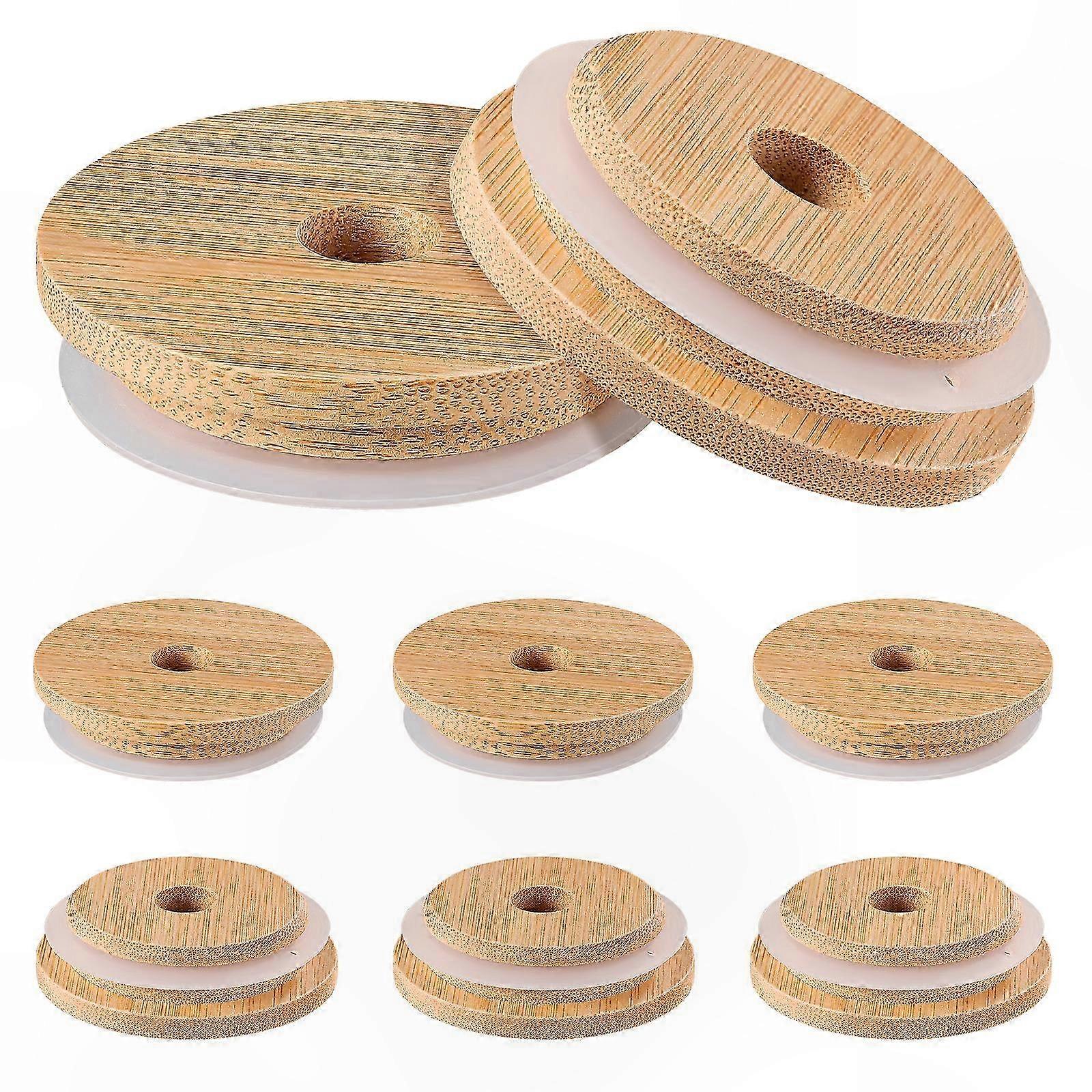 8pcs Wide Mouth Mason Jar Lids, Reusable Bamboo Drinking Lids with Straw Hole for Canning Jars