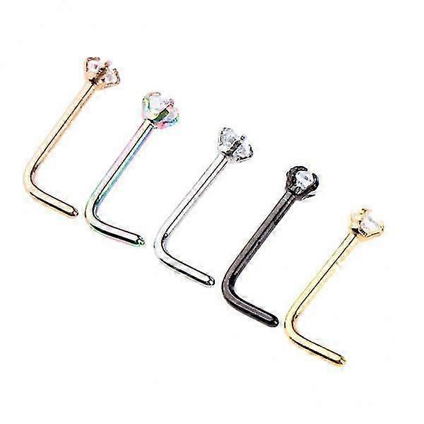 8x5 Pieces Stainless Steel L Shaped Nose Stud Rings Bar Body Piercing 20g