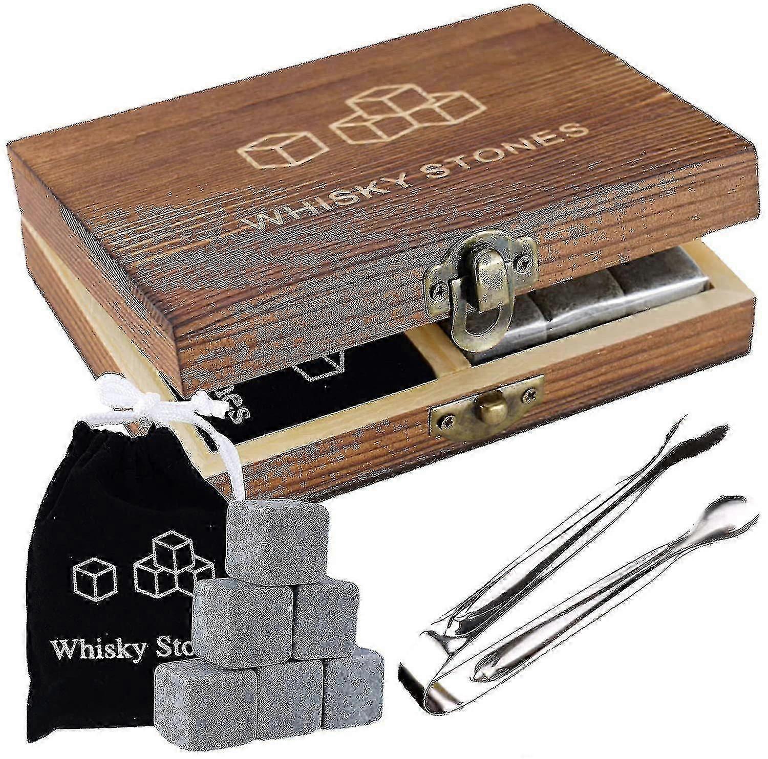 9 Granite Ice Stones And Wooden Box Whiskey Icewine Stones For Scotch, Whiskey, Bourbon, Tequila, Vodka, Rum, Wine