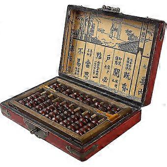 9-Column Classic Wooden Soroban Abacus in Vintage Leather Box for Study or Decoration Gift