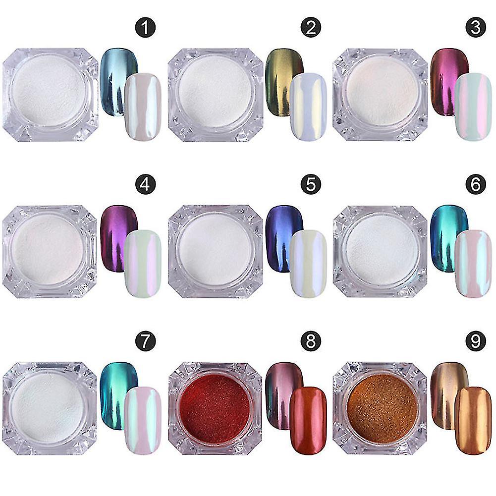9 Colors Mirror Powder Glitter Nail Beauty Art Pigment Diy Manicure With Brush