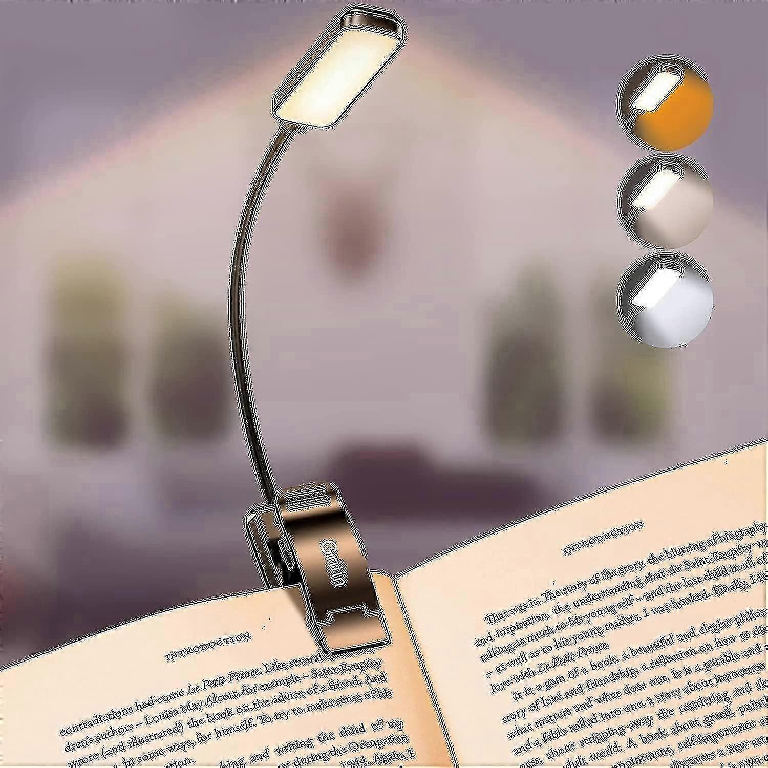 9 Led Book Light, Gritin 3 Eye-protecting Modes Reading Light Book Lamp (warm&cool White Light) -stepless Dimming, Rechargeable, Long Battery Life, 4-