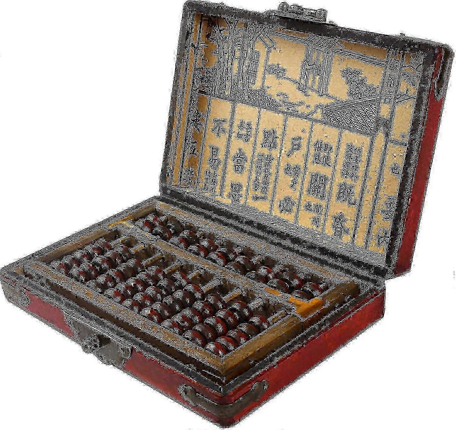 9 Column Classic Wooden Abacus With Vintage Leather Box, Soroban For Study Decoration Or Gift, Aging Treatment Sp-01