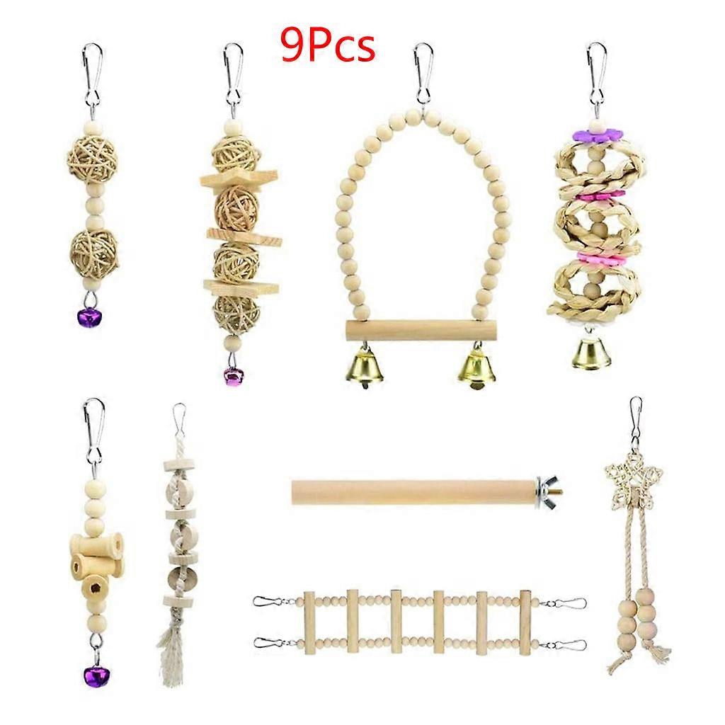9 Pcs/Set Bird Parrot Swing Toys Chewing Standing Hanging Perch Hammock Climbing Ladder Bird Cage for Budgerigar Parakeet Conure Cockatiel Mynah Love