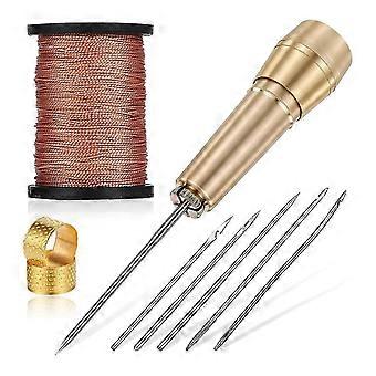 9pcs Leather Sewing Awl Kit with Copper Handle with 6 Needles for Leather Craft Needle Kit Shoe Repa