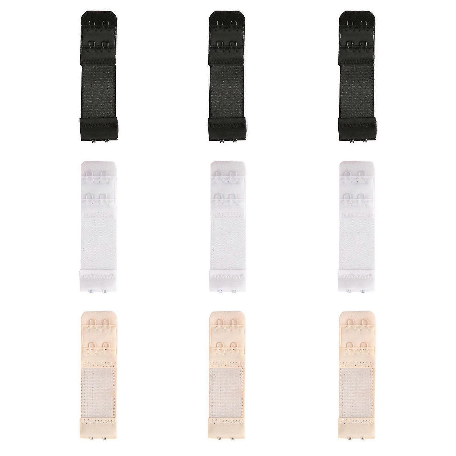 9 PCS Women's 2-Hook Bra Extenders in 3 Colors Stretchy Bra Extension Strap