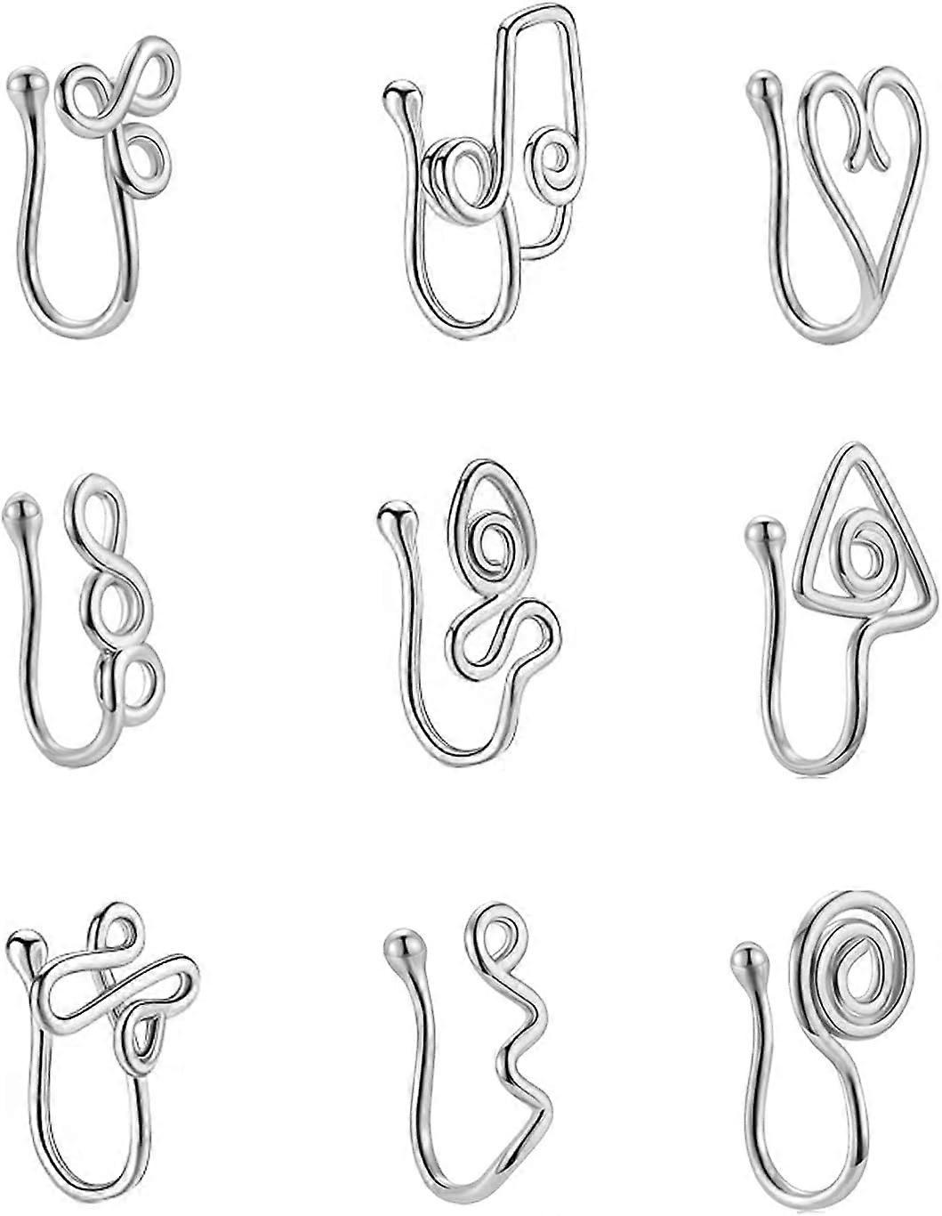 9Pcs Fake Nose Rings Hoop Clip On Faux Setump Cartilage Tragus Ring Non Piercing