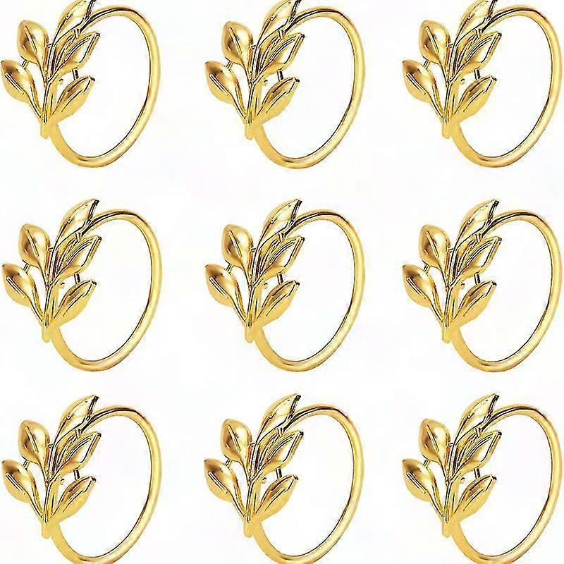 9Pcs Gold Leaf Napkin Rings Set for Wedding Restaurant Hotel Table Decor - Elegant Napkin Holders