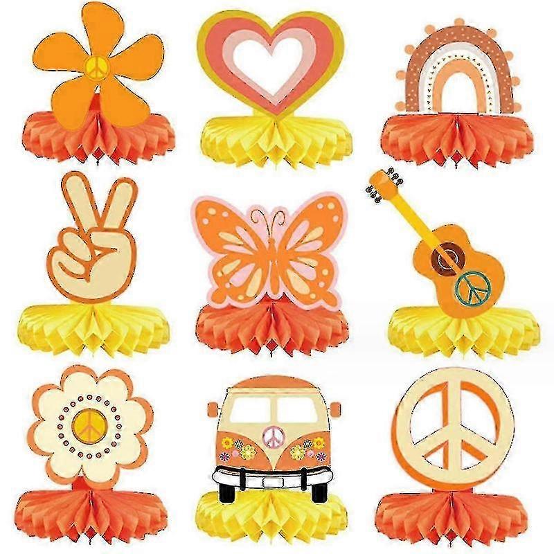 9 Pcs Groovy Hippie Boho Party Honeycomb Centerpieces, Two Groovy Table Topper Birthday Party Decoration Baby Shower Photo Booth Prop