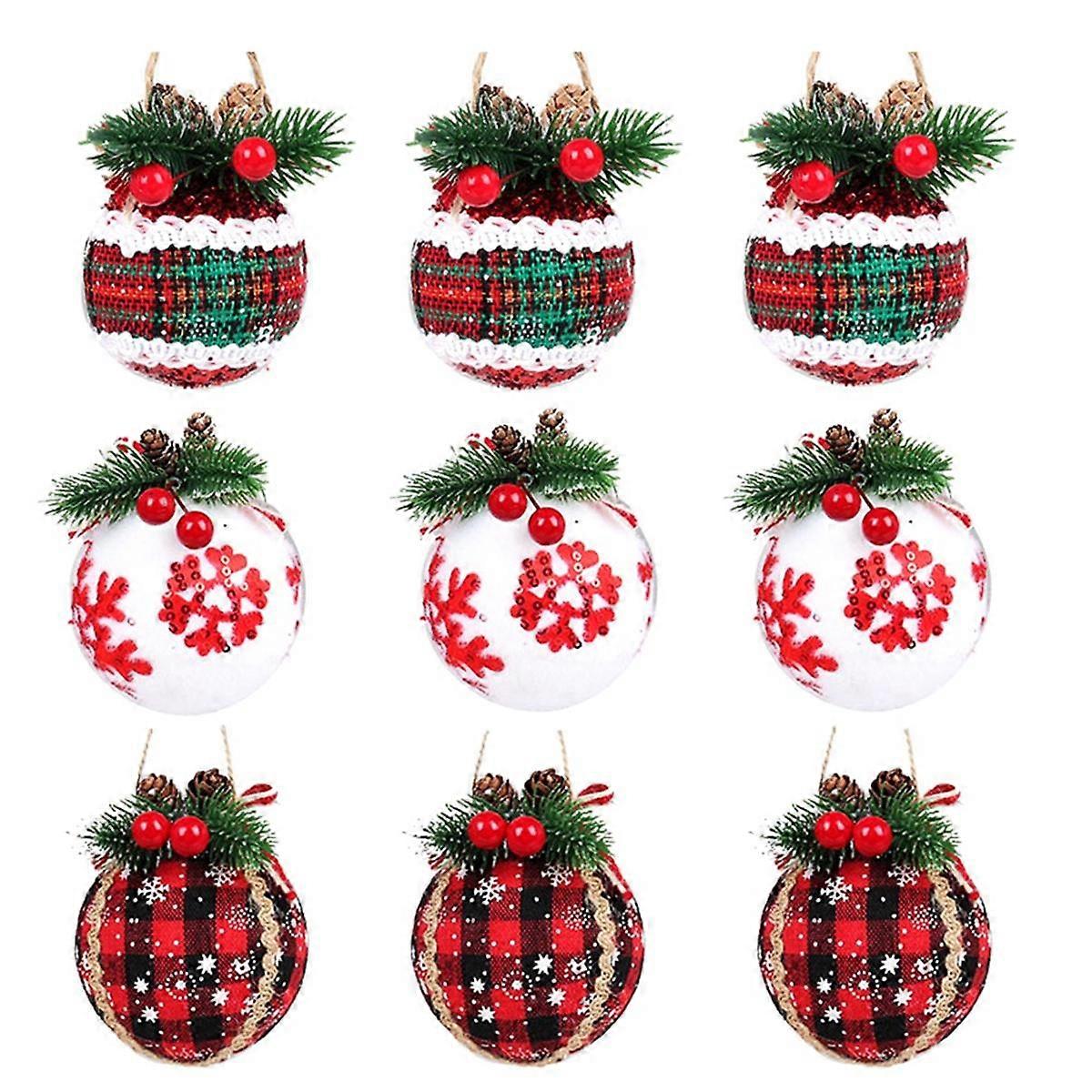 9PCS Christmas Ball Ornaments 3.15Inch Christmas Check Fabric Wrapped Balls Pendants for Christmas