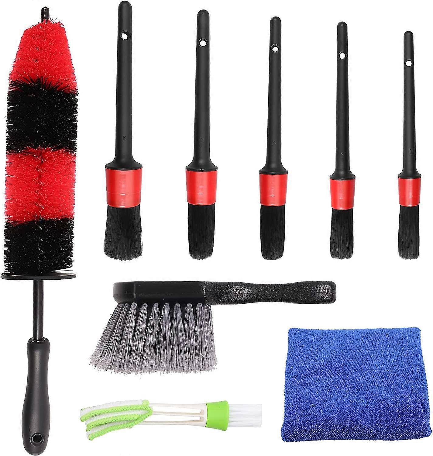 9 Pcs Car Cleaning Brushes Set with Wheel Brush, Long Handle Rim Brush, Detailing Brushes, Auto Car Washing Kit for Wheel, Air Vent, Engine, Dashboard