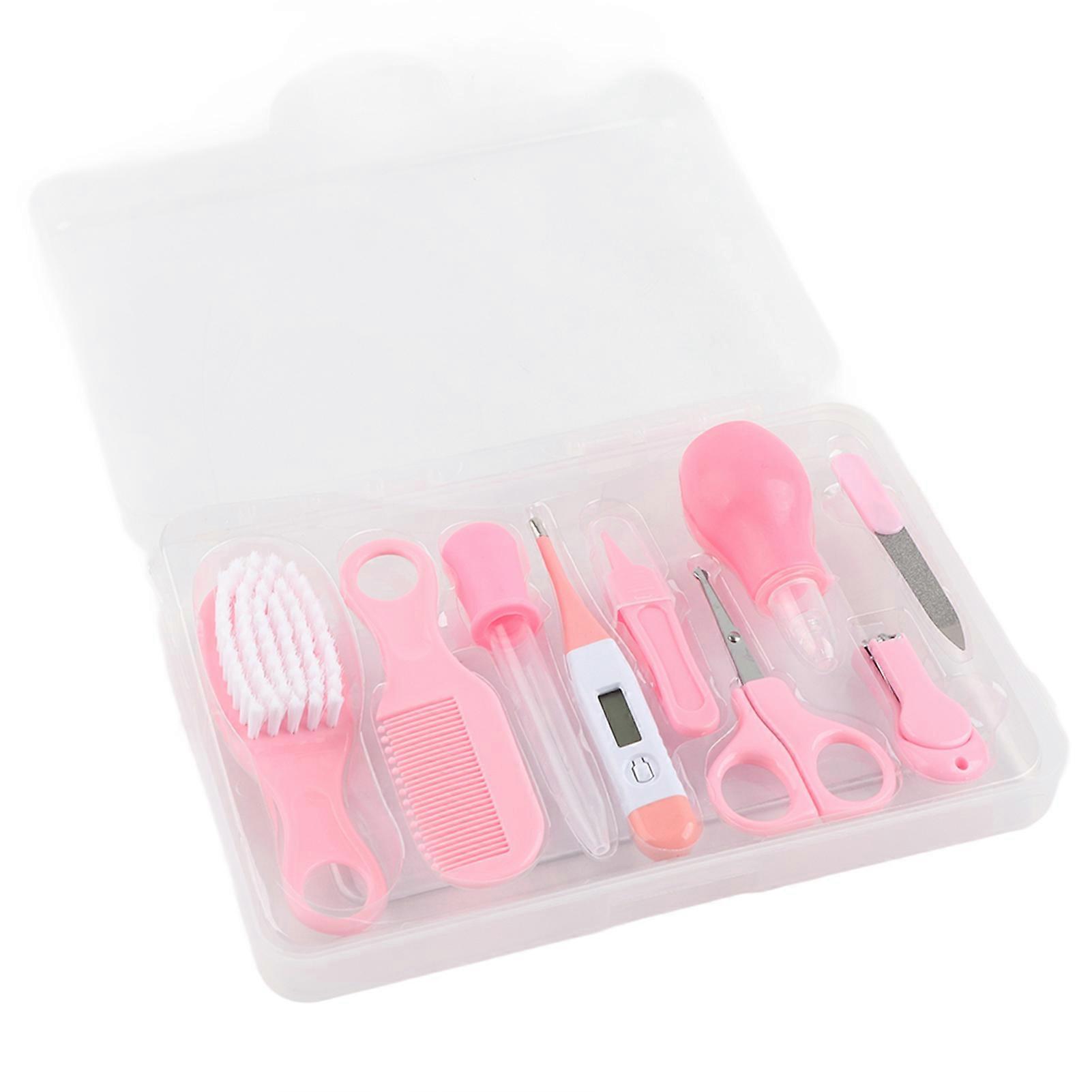 9pcs Convenient Daily Baby Nail Clipper Scissors Hair Brush Comb Manicure Care Kit Pink