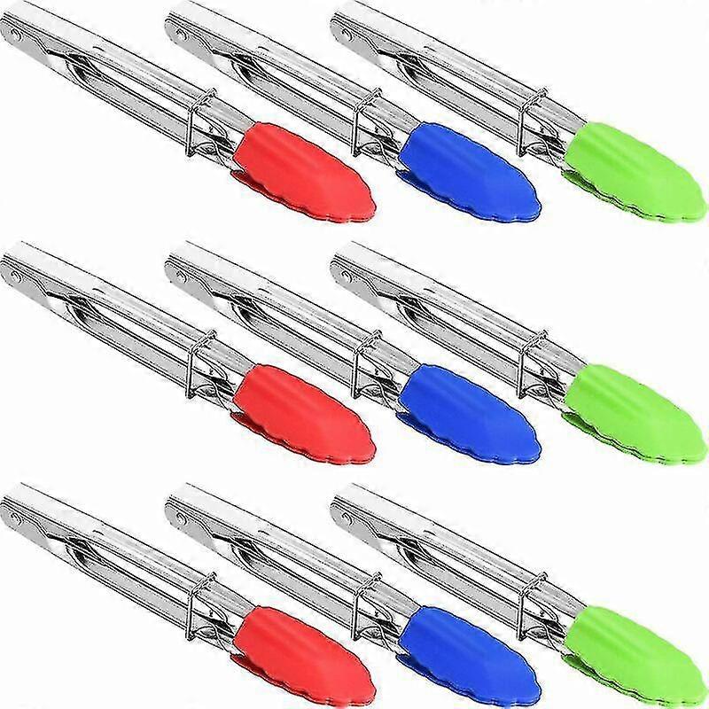 9 Pieces Mini Serving Tongs 7 Inch Small Silicone Tongs Kitchen Food Metal Tongs For Salad Cooking (red, Green, Blue)