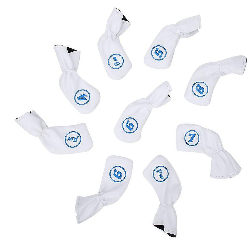 9PCS PU Leather Waterproof Thicken Plush Golf Putter Head Cover Iron Club Headcovers AccessoryWhite
