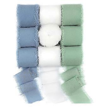 9 Rolls Handmade Chiffon Ribbon Fringe Silk Like Ribbon, Cream White Sage Green Dusty Blue Frayed R