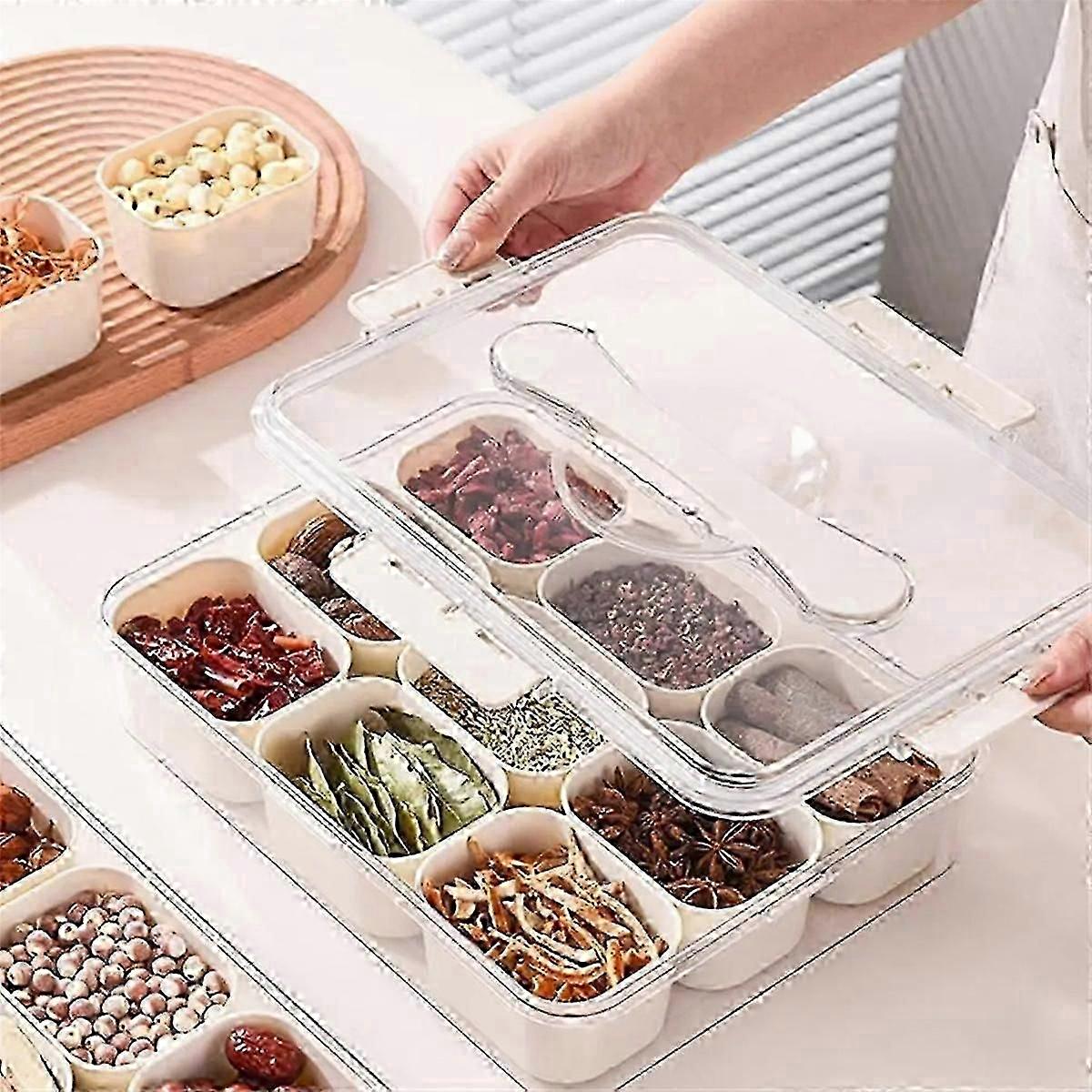 9 Compartments Divided Serving Tray with Lid Portable Snack Box