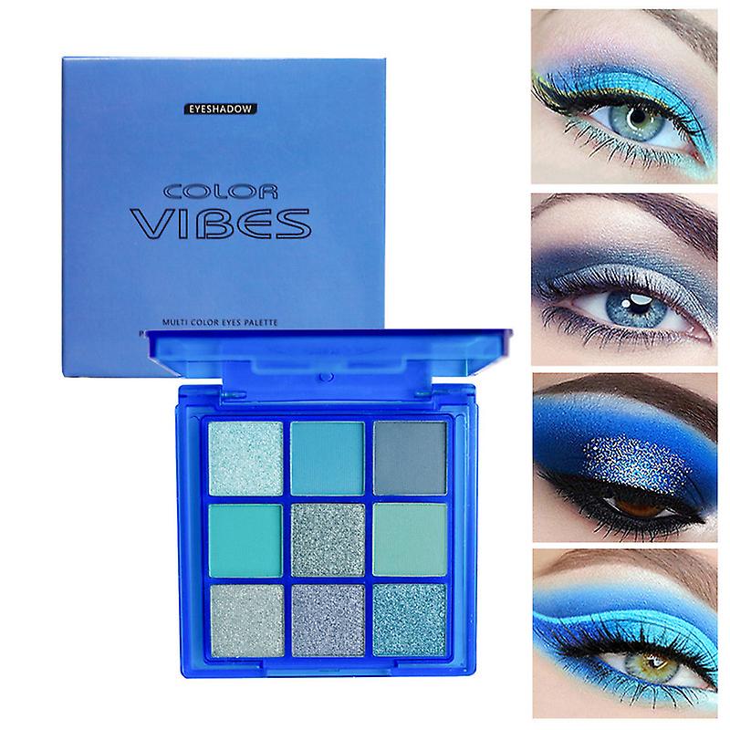 9 Color Eyeshadow Palette Makeup Matte And Glitter Blue Eye Shadow