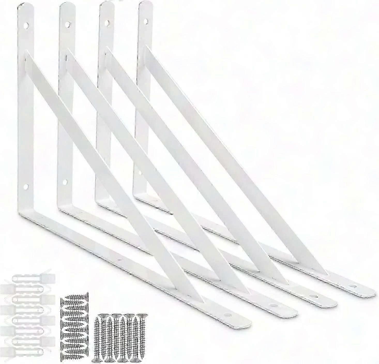 90 Degree Steel Square Wall Floor Brackets - 4 Triangular Supports with 20 Screws & 8 Anchors (White)