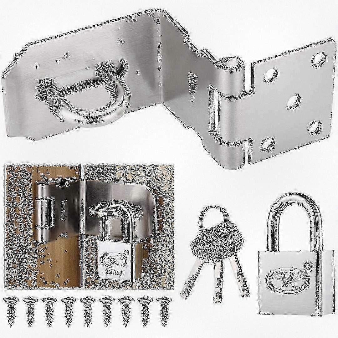 90 Degree Padlock Hasp With Padlock And Screws, Stainless Steel Door Latch Hasp, Durable Right Angle Padlock Hasp Suitable For Wooden Doors,