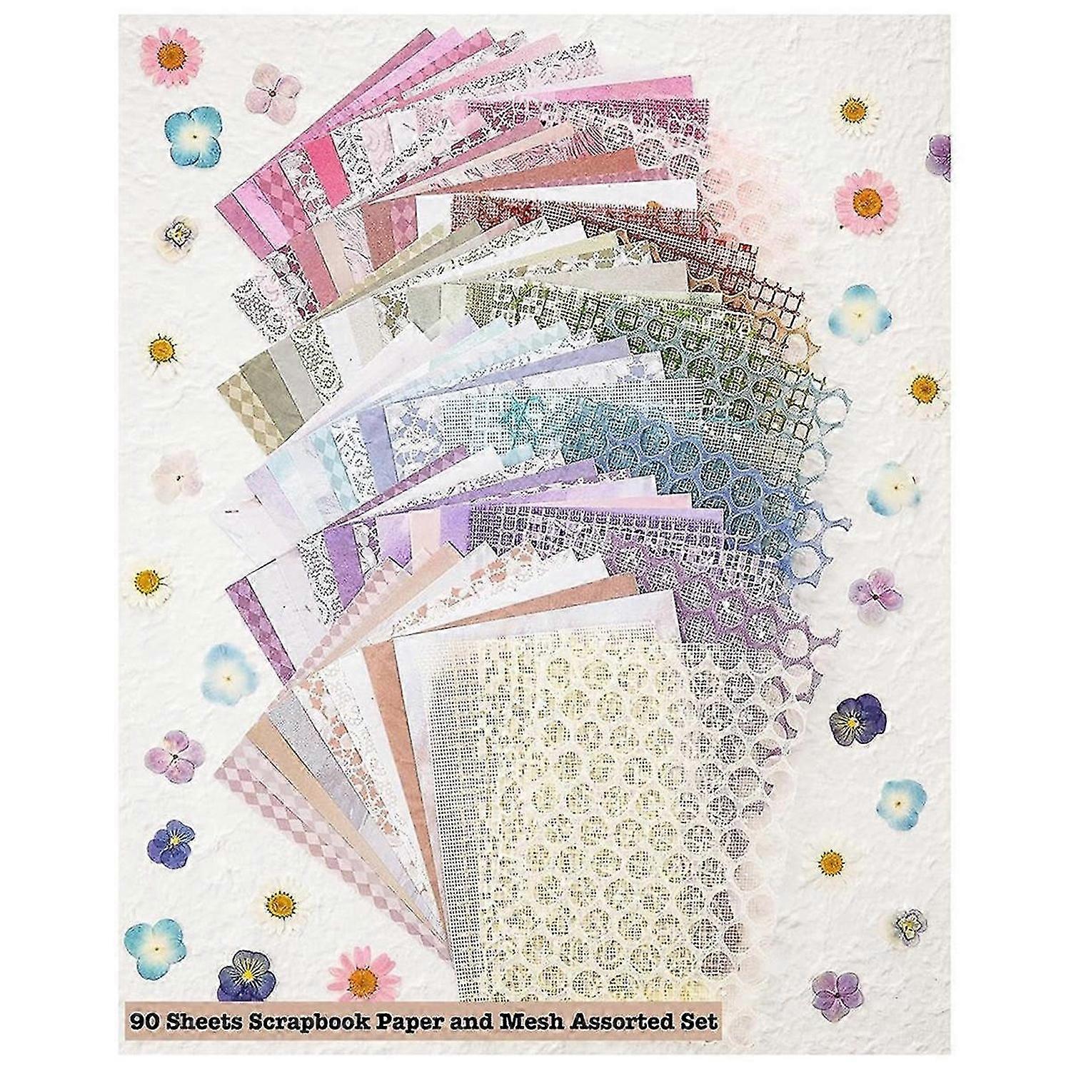 90 Sheets Scrapbook Paper and Decorative Mesh Fabric Assorted Set - 6 Pack Mixed Special Paper for Scrapbooking,A