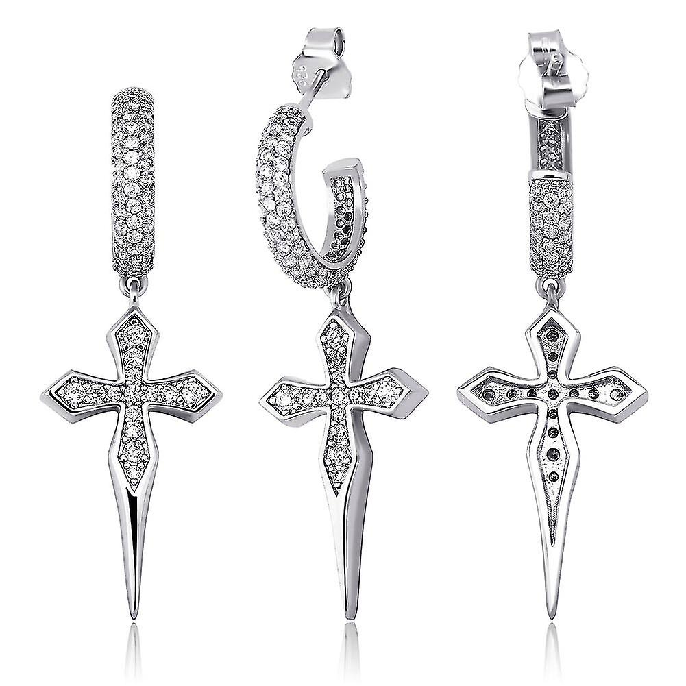 925 Sterling Silver Cross Earrings High Quality Iced Out Cubic Zirconia Hip Hop Cross Hoop Earrings Fashion Jewelry Gift