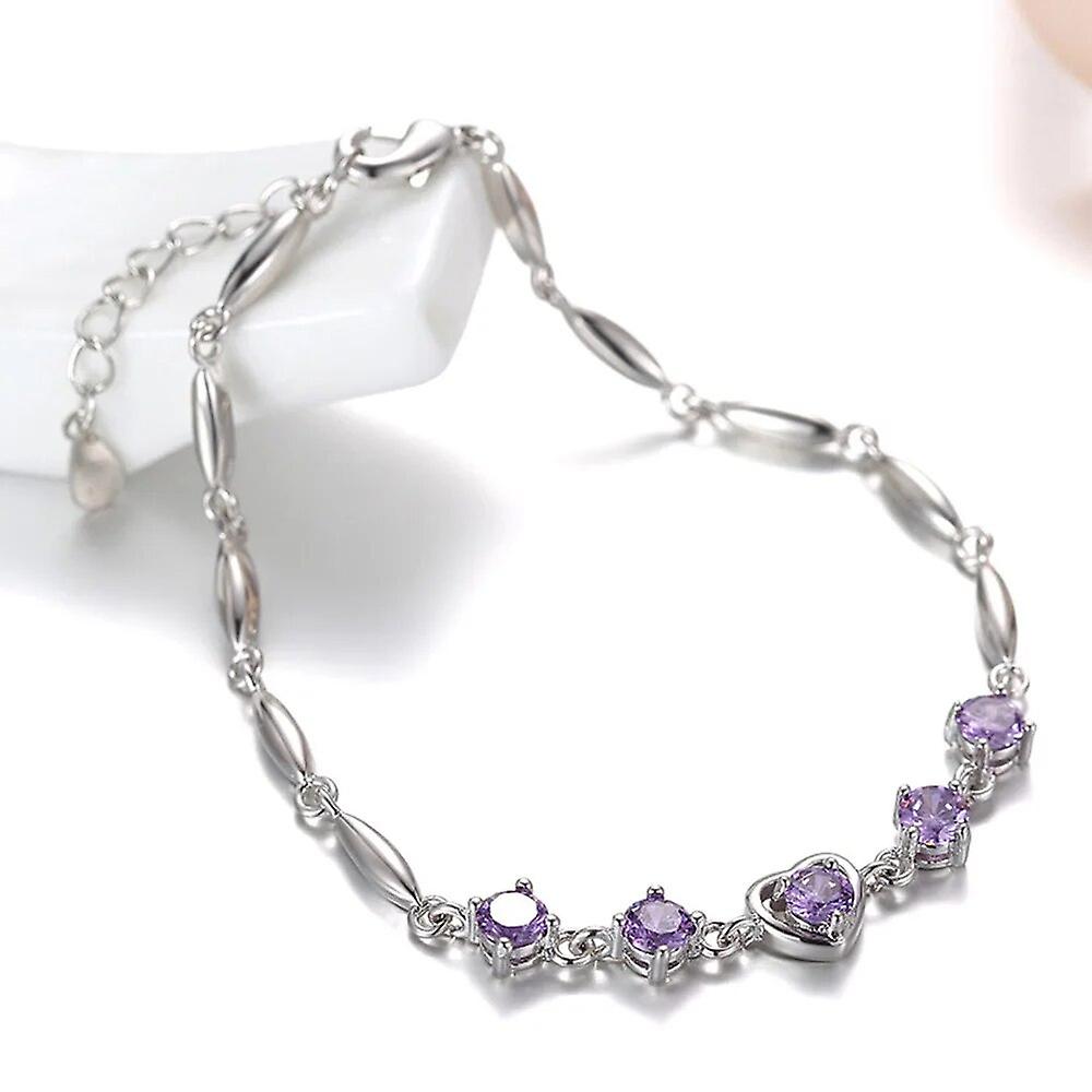 925 Sterling Silver Bracelet Premium Purple Crystal Zircon Lucky Bracelet Women Engagement Charm Jewelry Gift