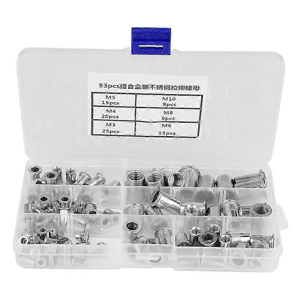 93pcs Threaded Insert 1 Box M3, M4, M5, M6, M8, M10 304 Stainless Steel Blind Rivet Nut Set