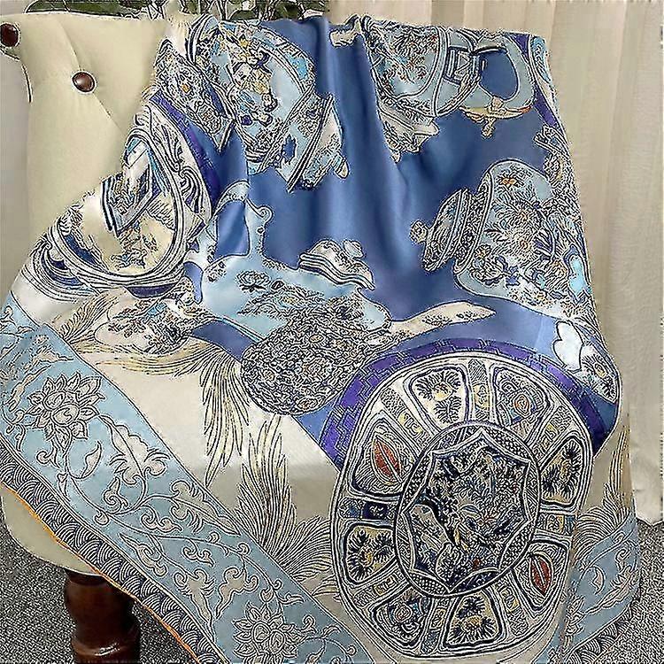 96% Mulberry Silk Scarf Large Square Blue White Porcelain Crepe Scarf