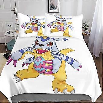 A160 Digimon 3D Comforter Cover Set for Kids Boys Digital Monsters Duvet Cover 3 Pieces Set Youth Teens Bedding Set Quilt Cover with Zipper Closure So
