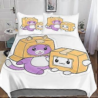 A217 Lankybox 3D Print Duvet Cover Bedding,3 Pieces Set Piece Animation Quilt Cover Piece Matching Pillowcase with Zipper Closure Soft Microfiber Doub