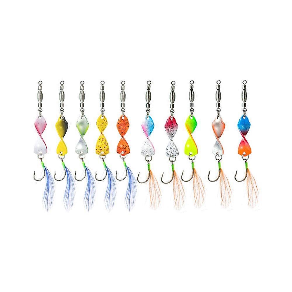A298 10Pcs Spinning Spoon Lure Set 360 Degree Rotation Metal Fishing Bait with Storage Box