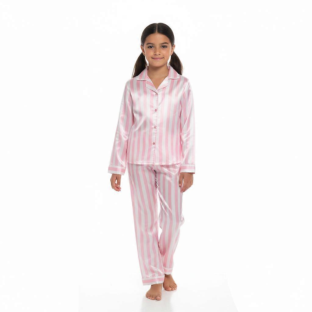 A2Z 4 Kids Girls Pyjama Satin Silk Stripe Traditional PJS With Piping Pyjama Set