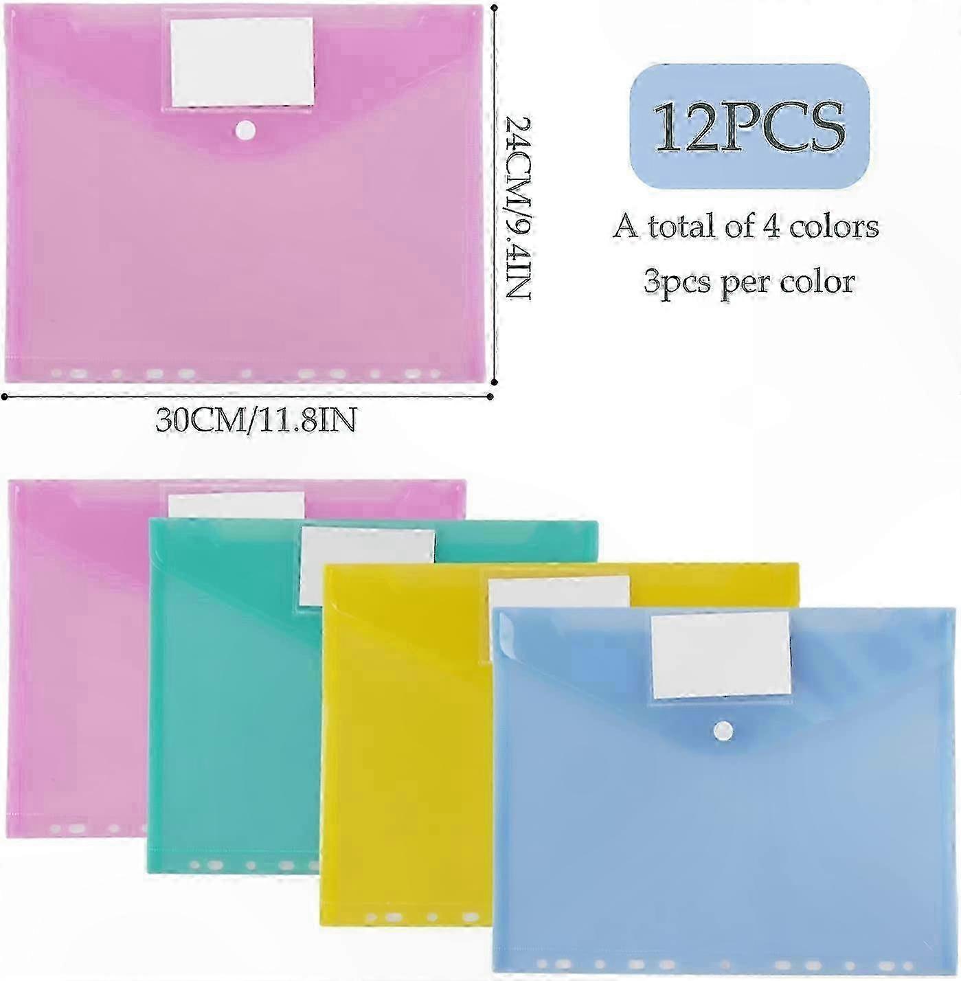 A4 Transparent Plastic Pockets, 6 Colors, Button Closure, Document Sorting Folders