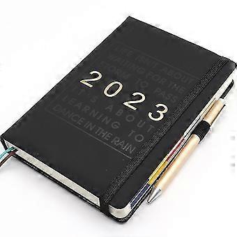 A5 Agenda 2023 Planner Notebook Weekly & Monthly 100 Gsm Paper Pu Leather Hard Cover Schedules Stationery Office School Supplies
