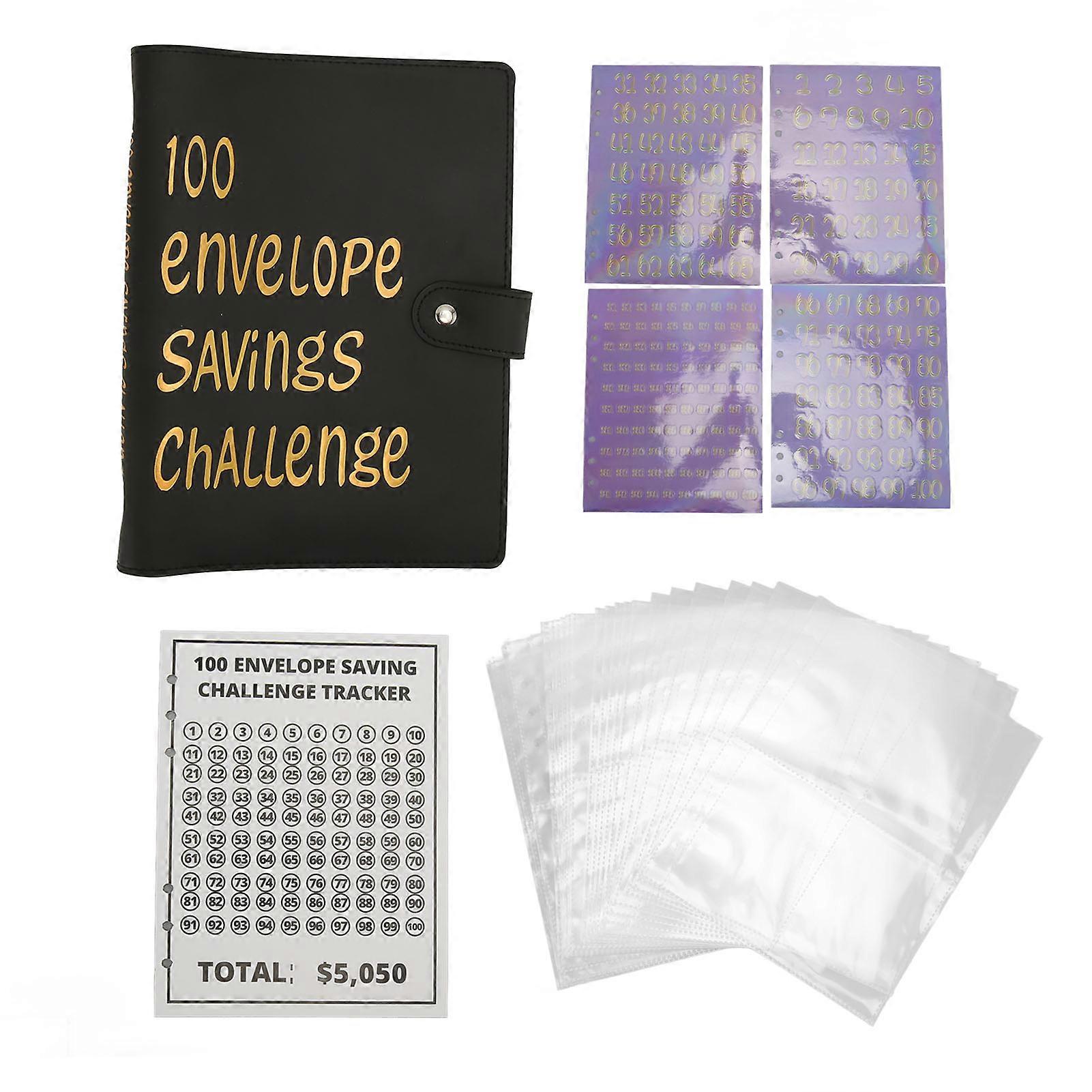 Money Saving Binder Waterproof PU Leather A5 Budget Binder with 100 Cash Envelope for Kids Adults Black