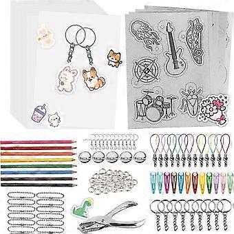 A5 ShrinkyDink Keychain Kit, Shrink Dinks Paper Kits for Kids DIY Art Craft with Keychain Earring Ha