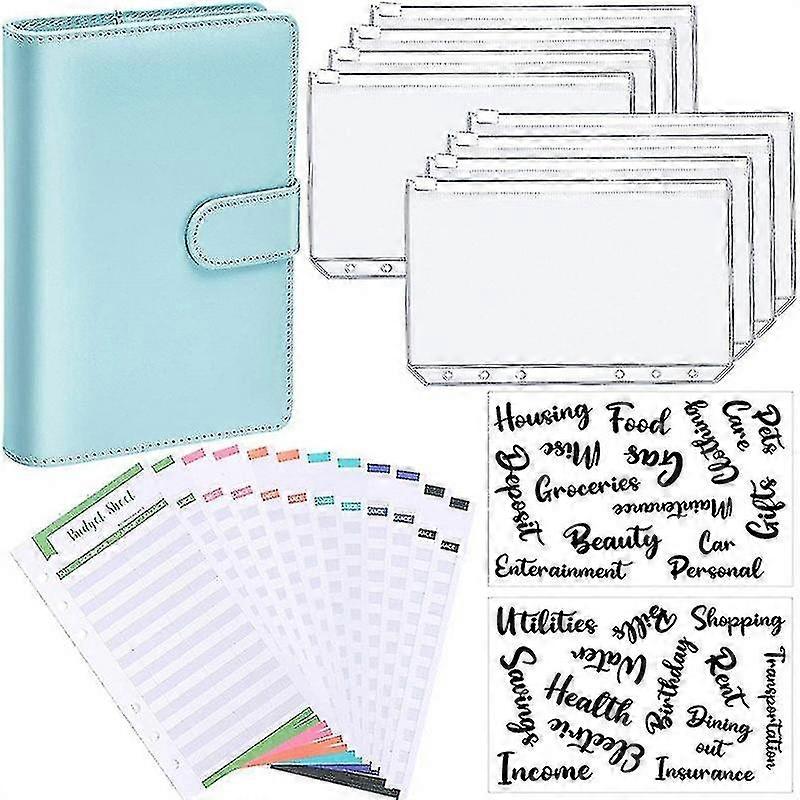 A6 PU Leather Binder Budget Notebook Planner Organizer System with Clear Zipper Pockets,Expense Budget Sheets and Letter StickerThoughtful Design:The notebook binder 1 pen holder and 4 sleeves in the cover are good for your passport, tickets, cards etc. The zipper bags will protect and store your stationery and invoices without punching, convenient.Simple to Use:The PU leather binder cover just need to press the 2 ends of the switch to open the loose leaf ring of the binder cover, then press the ring to close it after the installation of the zipper folders.Reliable Material:The notebook binder is made of PU leather, which is soft to contact and the magnetic buckle can easily closed by gently buckle, while zipper binder pockets are made from waterproof PVC, safe and tear resistant.Wide Use Scene:Zippered binder pockets are for storing bills, invoice, cash, coupons, cards, stamps and other small objects. Suitable in size and light in weight, it is suitable for schools, offices, travel, and families.Material: Leather, PVCSize: A6 binder cover: 7.5 x 5.1 inch/ 19 x 13 cmA6 binder pocket: 6.5 x 4.3 inch/ 16.5 x 11 cmA6 expense budget sheet: 6.7 x 3.4 inch/ 17 x 8.7 cm Package includes:1 x A6 notebook binder8 x A6 binder pockets12 x A6 expense budget sheets 2 Sheets of sticker labels (26 pieces)Note: Light shooting and different displays may cause the color of the item in the picture a little different from the real thing. The measurement allowed error is +/- 1-3cm.