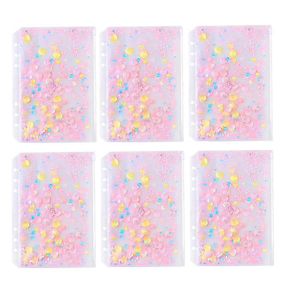 A6 Size Binder Loose Leaf Bags for Storage Pink PVC Material with 6 Holes 1 Set 6pcs