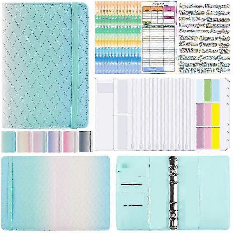 A6 Gradient Macaron Binder Hand Ledger Notebook Leather Pu Loose-leaf Book Cash Budget Book With Zip Bag, Green