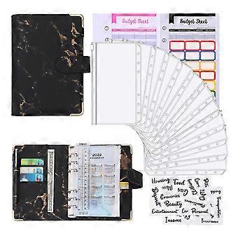 A6 Budget Binder with Marble Pattern PU Leather Notebook Cover Zipper Envelopes Lable Stickers Ruler Used as Money Organizer System Bill Money Card Sa