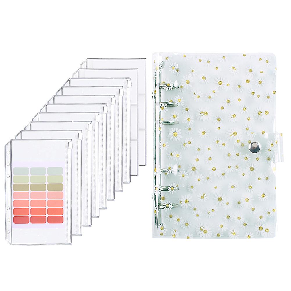 A6 Budget Binder Budget Planner with Clear Sequin Cover 8 Zipper Pockets Card Pouch Double Pocket Labels Small Daisy