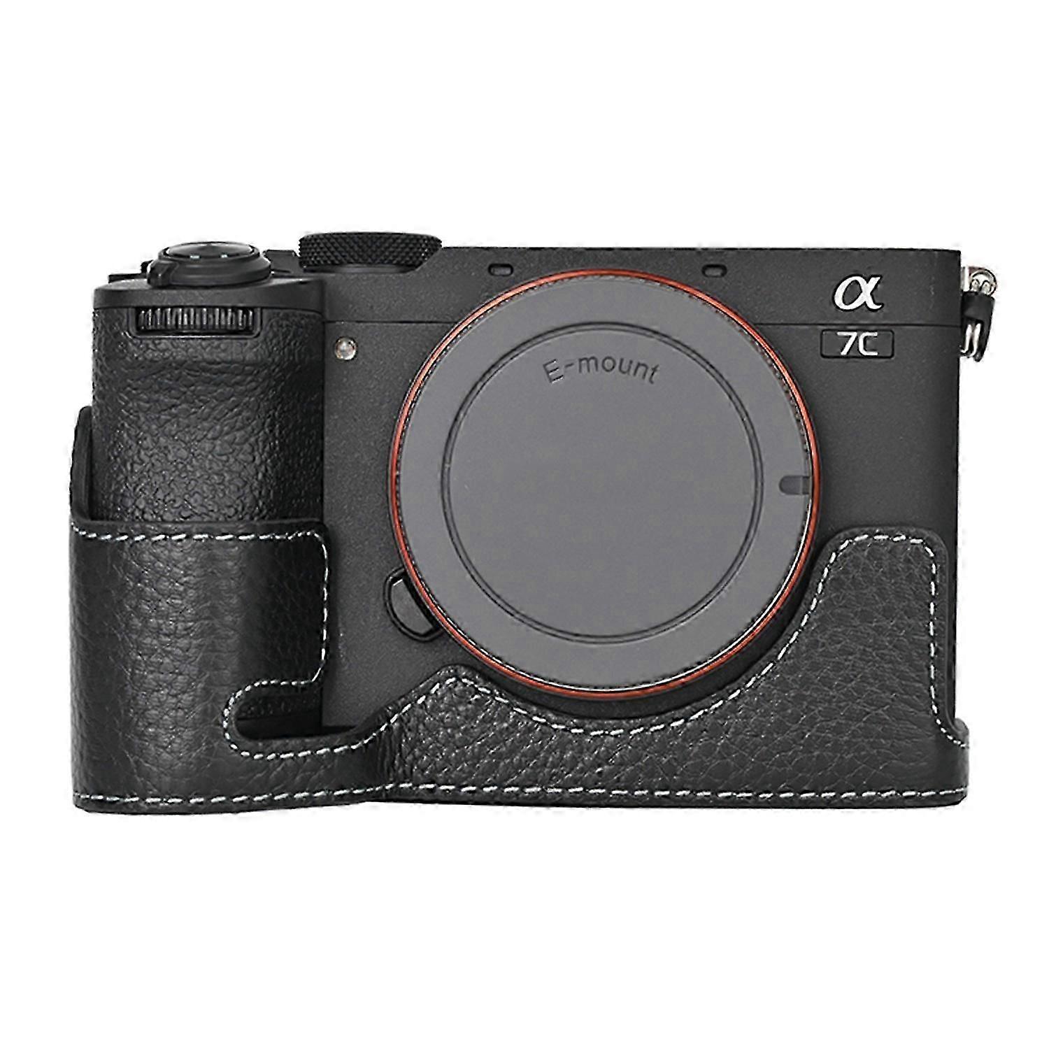 For Sony A7C II/A7CR Genuine Cow Leather Bottom Case Half Camera Cover with Battery Opening