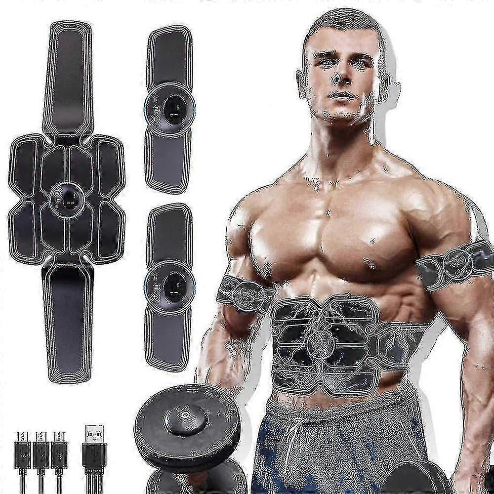 Product Size: Abdominal Patch: 15*60CMHost: 60mm*15mmMaterial: PU leather,Package content: 3*host1*Abdominal sticker2*Partial stickers1*data cable1*Instruction1.What Is The EMS? EMS (Electrical Muscle Stimulation) is through current stimulation, sending signal directly to muscles, and promoting muscle movement. It is healthy fitness equipment technology that stimulates muscle movement. And this device can help you lose fat, gain muscle and tone your figure in a very quick and easy way. Suitable for most people such as fat-prone people, housewives, sports fans, white-collar workers.2.6 modes & 9 intensity levels 6 training modes and 9 intensity levels to meet your various athletic needs, from warming up to high-intensity training. And EMS abdominal trainer is easy to use. You can easily select a mode and intensity by simply pressing the buttons on the main unit. By continuously using the EMS training device, you can get a perfect body.3.LED display & USB charging The improved new EMS abdominal muscle trainer has an LED screen. The mode and intensity are displayed on the LED screen, making it easy to use. The built-in Li-ion battery in the EMS training device ensures safe and faster charging. Just plug in the Android data cable to charge anytime. No more dry batteries. More convenient to use.4.Efficient training The new EMS training device is very easy to use. Just put it where you want to workout and it will work automatically. 15 minutes a day - corresponds to 1500 m running, 30 minutes swimming. And suitable for most body parts such as arm, stomach, upper abdomen, lower abdomen, back, buttocks, thighs and lower legs. You will notice the effectiveness after 2 months in a row.5.Applicable Location & User The best thing about the muscle stimulator is that you can comfortably exercise your body while doing chores, reading or traveling. You can glue it where you want to workout. EMS training is suitable for every healthy person. People with pacemakers and cardiovascular diseases as well as pregnant women are excluded.