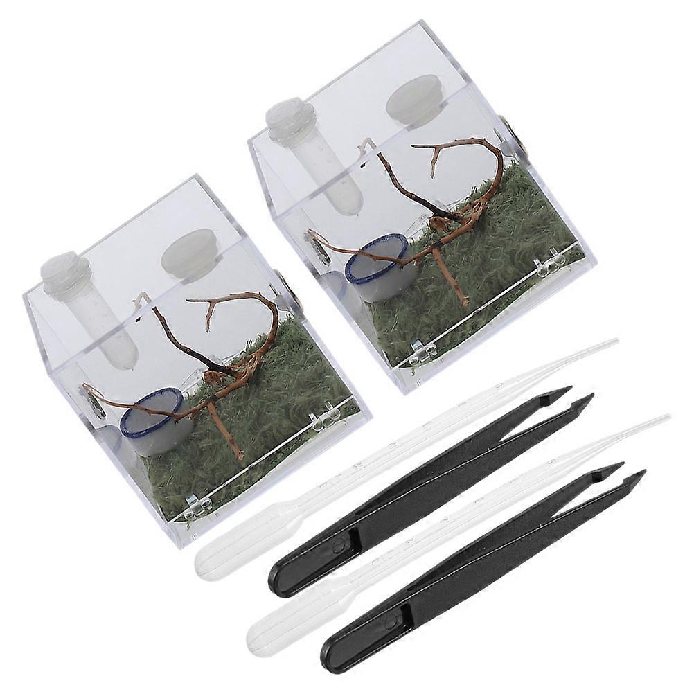 Acrylic Jumping Spider Enclosure Habitat Box Transparent Feeding Case with Tools Durable Sturdy Design for Easy Observation 2 Sets