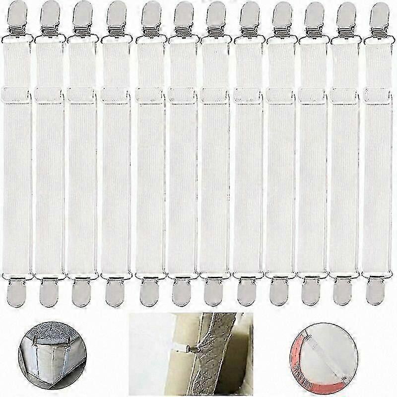 Adjustable Elastic Sheet Holders with Fixing Straps, Set of 12 for Securing Bed Sheets